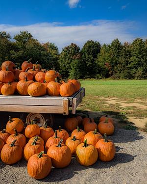 Pumpkins for sale at Mill River Farm Market in Deerfield, Massachusetts.